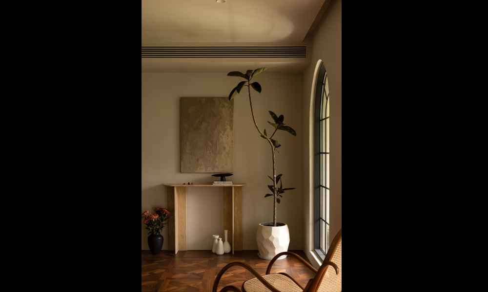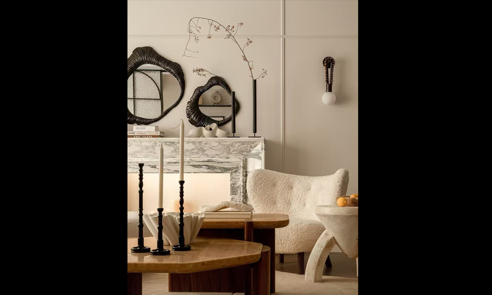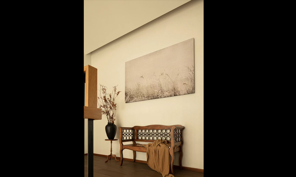 细节点缀:手工陶器、枯枝插花、抽象艺术画作,以“少量但精致”的原则增添人文气息。