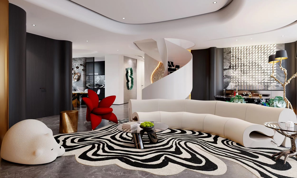 2. **隐奢质感**:通过高质感材料(如大理石、实木、金属)与精湛工艺,在低调中展现奢华,避免浮夸,强调“看不见的精致”。